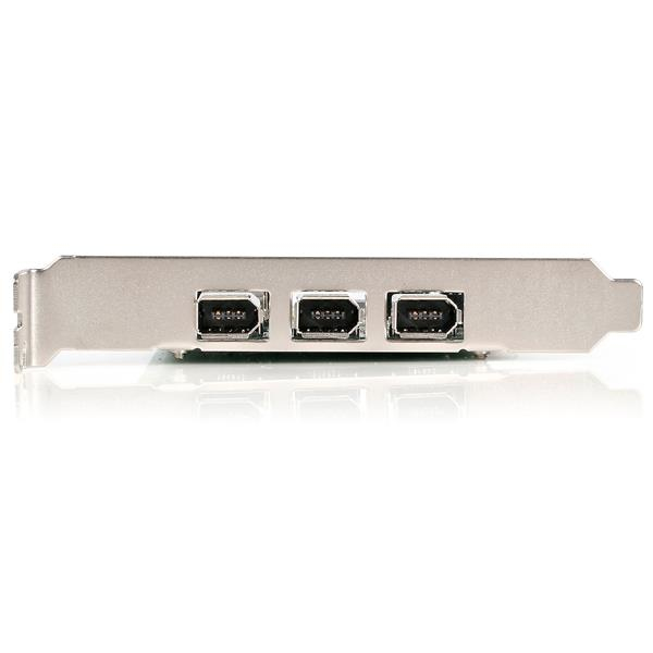 Esta Tarjeta Adaptadora PCI FireWire 400 IEEE 1394 de 4 Puertos permite convertir una ranura PCI de la placa base en cuatro puertos hembra FireWire IEEE 1394a de 6 pines (1 interno, 3 externos) - una solución eficaz y económica para conectar cualquier dispositivo FireWire 400 equipado con un conector de 6 pines a su ordenador de escritorio