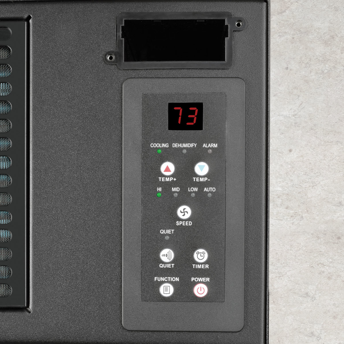 El cable de alimentación de 1.83 m [6 pies] con clavija NEMA 5-15P se conecta a un tomacorrientes de CA estándar. El SRCOOL2KWM se reinicia automáticamente después de fallas del suministro eléctrico El panel de control fácil de usar le permite programar reinicios y apagados sin supervisión, ajuste la temperatura y fijar otras condiciones de funcionamiento.