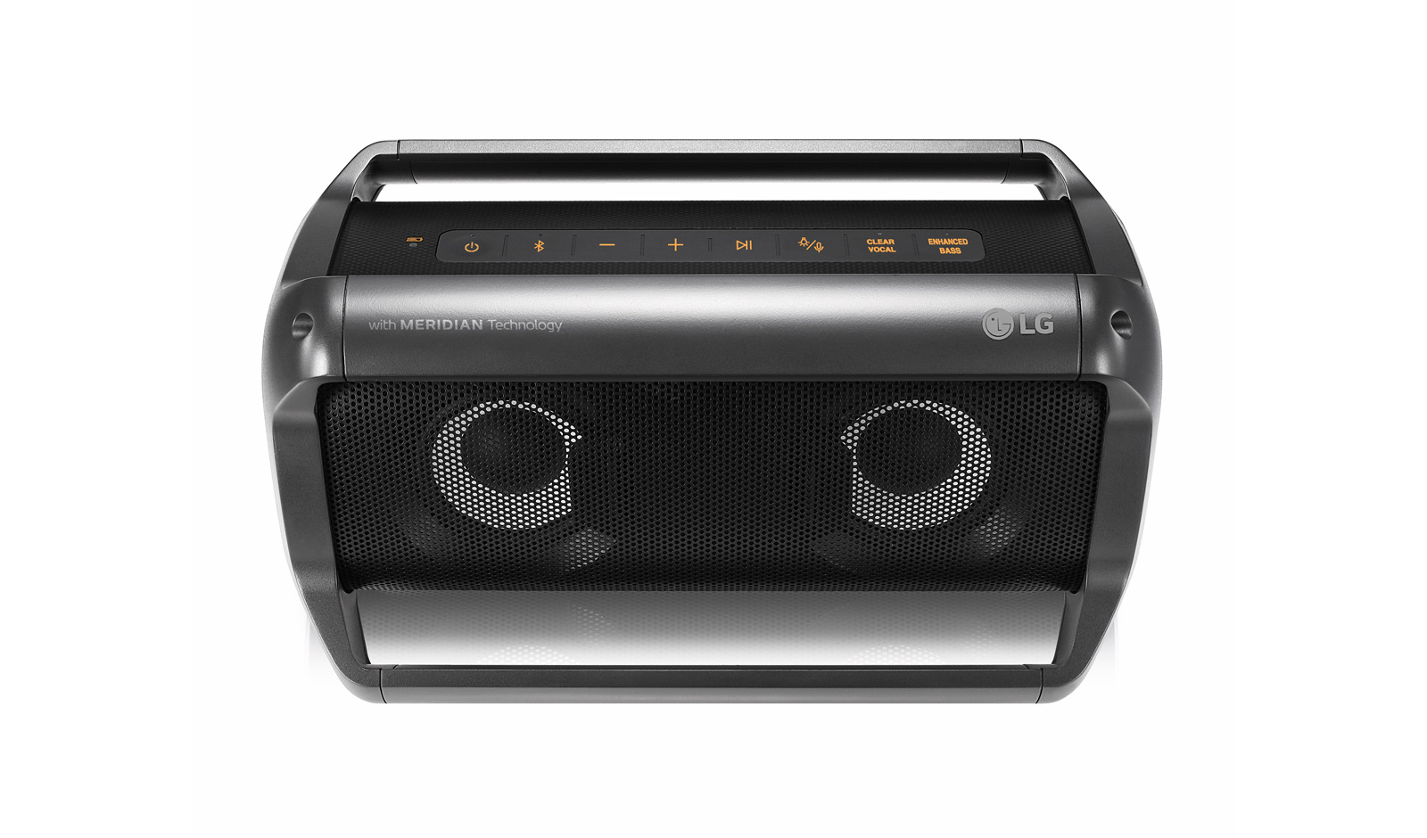 BOCINA PORTATIL LG PK5 20W, MULTIBLUETOOTH(2) AUX, BAT HASTA 18HRS, RESISTENTE A SALPICADURA DE AGUA, LUCES LED, COLOR NEGRO PK5
