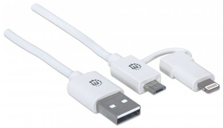 El cable iLink para carga y sincronización de Manhattan es un ingenioso cable 2 en 1 que pasa de ser un cable Micro USB a un conector Lightning de manera rápida y sencilla para poder cargar y sincronizar tus dispositivos favoritos. En su configuración como conector Lightning, este cable trabaja con tu iPhone 5S, iPhone 5, iPhone 5C, iPod Touch (5a. generación), iPad (4a. generación), iPad Air y iPad Mini. Luego cambia al conector Micro USB para cargar tu smartphone, tableta, cámara digital, sistemas portátiles de videojuegos u otros dispositivos móbiles.