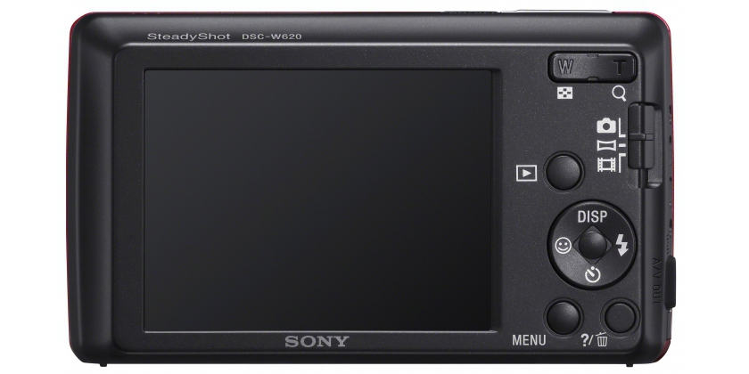 Sony Cyber-shot DSC-W620. Tipo de cámara: Cámara compacta, Megapixeles: 14.1 MP, Tamaño del sensor de imagen: 1/2.3", Tipo de sensor: CCD, Máxima resolución de imagen: 4320 x 3240 Pixeles. Sensibilidad ISO (máx.): 3200. Zoom óptico: 5x, Zoom digital: 10x, Intervalo de longitud focal: 5 - 25 mm. Fastest camera shutter speed: 1/2000 s. Tipo HD: HD, Máxima resolución de video: 1280 x 720 Pixeles. Diagonal de la pantalla: 6.86 cm (2.7"). Peso: 100 g. Color del producto: Rojo