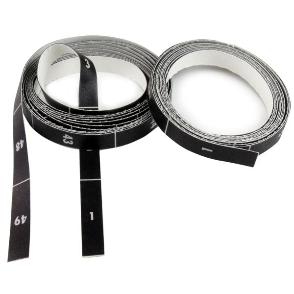 Rápida y sencilla instalación en cualquier rack, de hasta 49U de tamañoLas etiquetas son autoadhesivas, lo cual facilita pegarlas a cualquier lado de su rack para simplificar la instalación. Cada etiqueta del kit contiene marcas para equipos de hasta 49 unidades. Esto garantiza que se podrá cortar fácilmente la etiqueta a un tamaño más pequeño y que se ajuste a cualquier rack, de hasta 49U de tamaño.