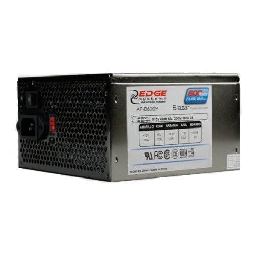 La fuente de poder AF-B600P de Edge Systems cuenta con un sistema de ventilación para facilitar el enfriamiento del CPU, ya que su ventilador de 12 cm empotrado en la estructura de la fuente permite extraer el calor que produce el funcionamiento de la misma, además de no permite ingresar el calor de la fuente a los otros componentes del CPU. Cuenta con una buena distribución del cableado para facilitar las conexiones y poder instalar los dispositivos que requieras, incluyendo un cable de 12V para brindar mayor estabilidad al sistema. Cumple además con estrictos estándares de calidad para asegurar un uso prolongado en tu sistema de cómputo.