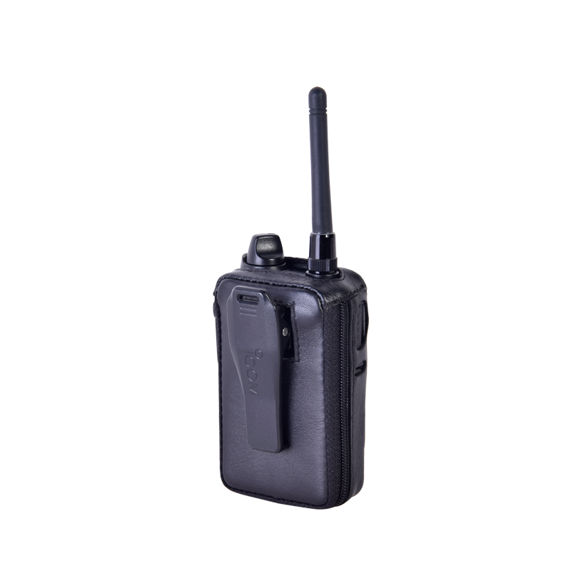 FUNDA REFORZADA DE PIEL SYSCOM FSMIP-100H, con cierre lateral y visor frontal transparente de pantalla para uso en radio IP-100H.