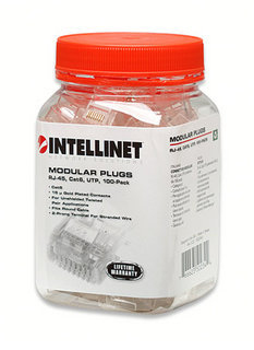 Intellinet 502344. Conector: RJ-45 Texto, Tipo de género: Macho/Macho, Contactos del conector chapado: Oro. Color del producto: Transparente, Materiales: Policarbonato. Cantidad de estuches o cajas de cartón: 100 pieza(s)
