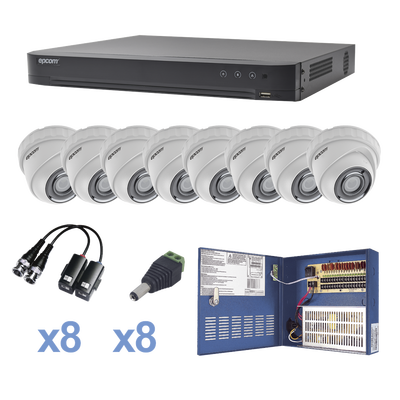 Sistema TURBOHD Epcom KEVTX8T8EW, 1080p / DVR 8 Canales / 8 Cámaras Eyeball (exterior 2.8 mm) / Transceptores / Conectores / Fuente de Poder Profesional hasta 15 Vcd para Larga Distancia.