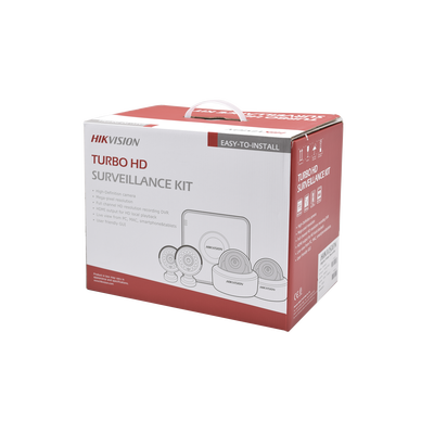 El Kit incluye: 1 DVR de 8ch DS-7108HGHI-F1 4 Cámaras Bullet (Interior / Exterior), DS-2CE16D0TIRP (Plastico) 4 Juegos de cable de 18 mts 1 Fuente de poder: 3.3 Amp. Garantia: 2 Años