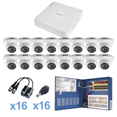 Sistema Epcom KESTXLT16EW, TURBO HD720p, Incluye DVR 16ch, 16 cámaras eyeball (interior - exterior 2.8mm), Transceptores, Conectores, Fuente de poder profesional Heavy Duty 20A, Hasta 15Vcd para Larga Distancia