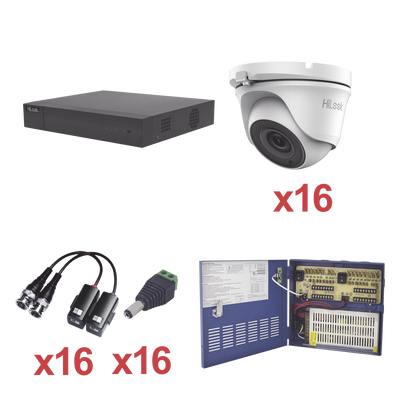 Sistema Hilook by hikvision KH720P16EW, TURBOHD 720P Incluye DVR 16 Canales, 16 Cámaras eyeball 2.8mm, transceptores, conectores, Fuente de poder profesional Hasta 15Vcd para Larga Distancias