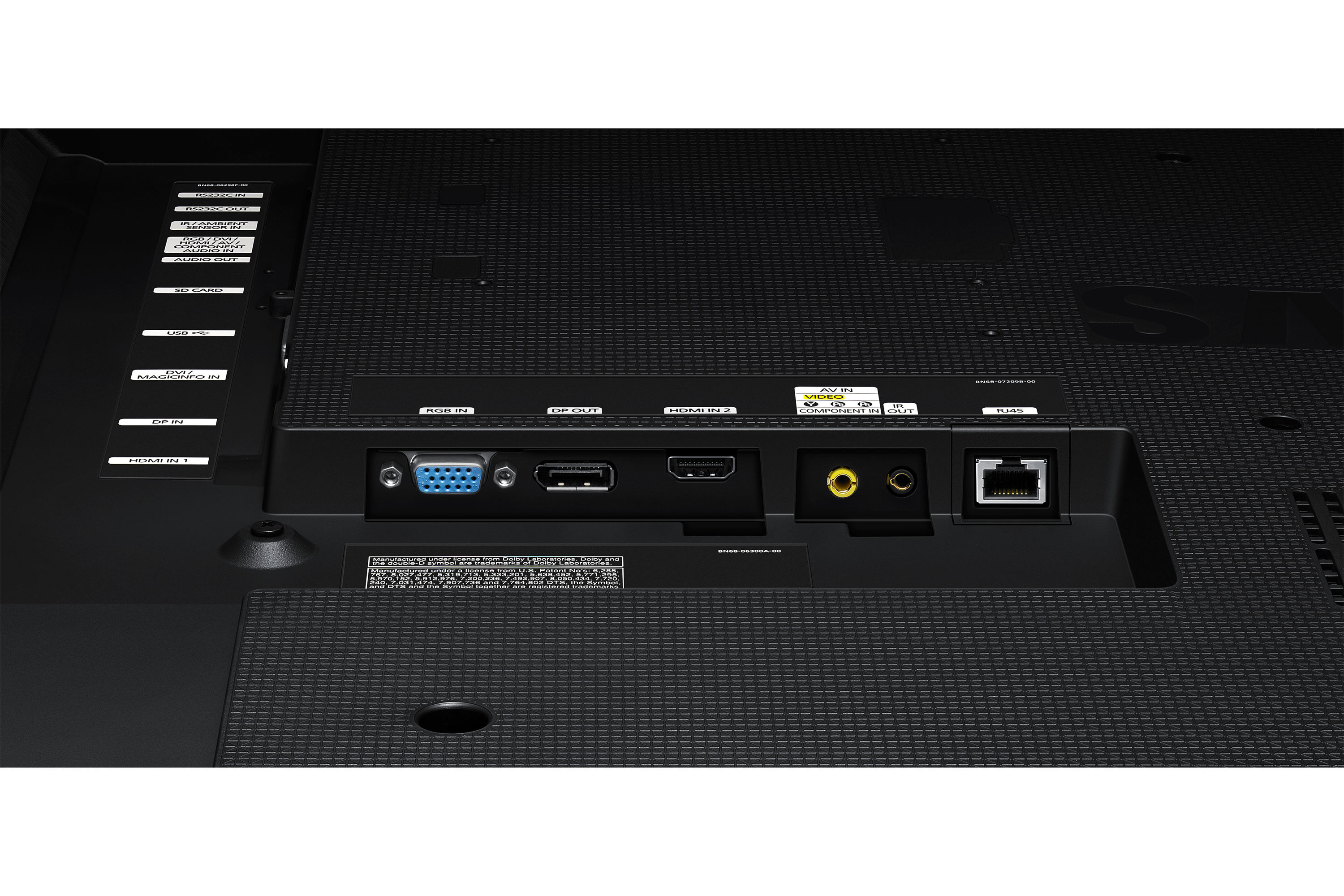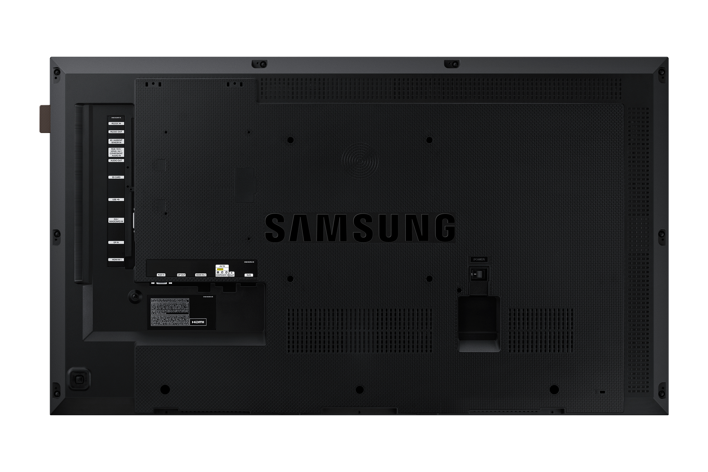 Samsung DM48E. Diagonal de la pantalla: 121.9 cm (48"), Tipo de visualizador: LED, Resolución de la pantalla: 1920 x 1080 Pixeles. Potencia estimada RMS: 20 W. Diseño: Digital signage flat panel, Color del producto: Negro, Interfaces de montaje VESA: 400 x 400 mm. Horas de funcionamiento (horas/días): 24/7. Consumo energético: 94 W, Clase de eficiencia de energía: B, Voltaje de entrada AC: 100 - 240