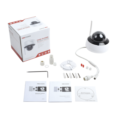 Cámara Mini Domo IP Hikvision DS-2CD2123G0D-IW2, 2 Megapixel, 30 mts IR, Exterior IP66, dWDR, Lente 2.8 mm, Micrófono Interconstruido