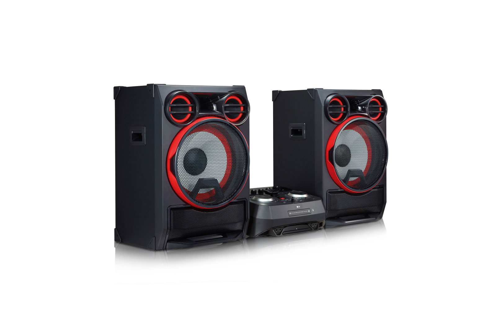LG CK99. Tipo: Minicadena de música para uso doméstico, Color del producto: Negro, Rojo, Coloración: Monótono. Potencia estimada RMS: 5000 W, Tipo de altavoces: De 3 vías, Subwoofer driver diameter (imperial): 38.1 cm (15"). Bandas de radio soportadas: FM, RDS: PLL, Tipo de sintonizador: Digital. Tipo de visualizador: VFD. Auriculares: 3.5 mm/6.35 mm, Micrófono: 6,3 mm