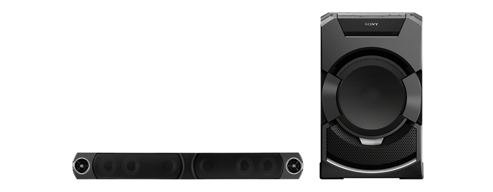 Colócalo y prepárate para la fiestaEl subwoofer del sistema MHC-GT5D incorpora prácticas ruedas y un agarre para transportarlo fácilmente tirando de él, que lo convierte en el equipo perfecto para tus fiestas. Las barras sonoras independientes pueden acoplarse fácilmente al agarre a un ángulo de 10 grados para obtener un sonido homogéneo en zonas amplias, o bien fijarse a un trípode para una instalación más versátil.