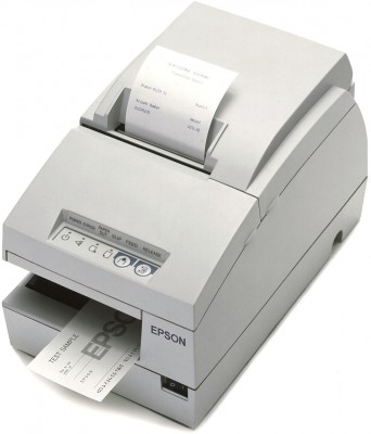 Epson TM-U675-012. Máxima velocidad de impresión: 205 carácteres por segundo, Densidad de caracteres: 17.8 carácteres por pulgada, Máximo número de copias: 2 copias. Cabezal de impresora: 9-pin. Tamaño de buffer: 4 KB. Duración de banda: 6 millón de caracteres, Tiempo medio entre fallos: 180000 h. Peso: 4.8 kg