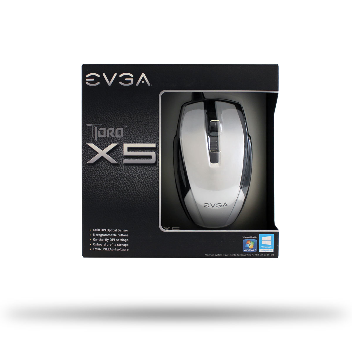 EVGA TORQ X5. Interfaz del dispositivo: USB, Cantidad de botones: 8 Texto, Tecnología de detección de movimientos: Óptico. Color del producto: Negro, Plata, Factor de forma: Ambidextro. Capacidad de memoria integrada: 512 KB. Ancho: 6.477 centímetro, Profundidad: 11.786 centímetro, Altura: 3.8862 centímetro