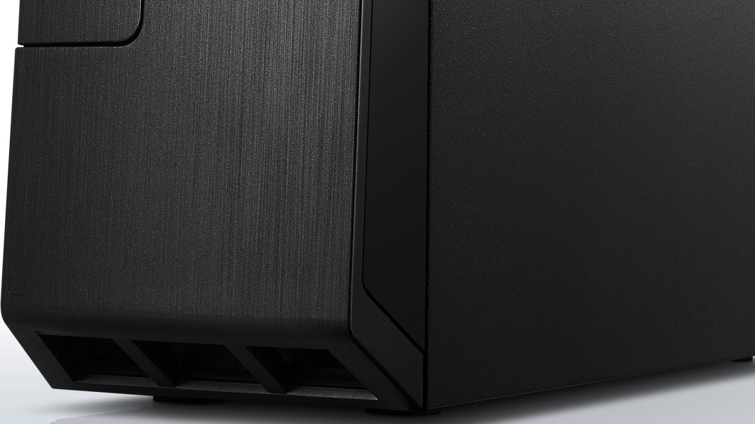 Con solo la mitad del tamaño de un PC de sobremesa estándar, el Lenovo H30 mantiene su espacio de trabajo ordenado y suma un toque de estilo con su frontal táctil metálico pulido.