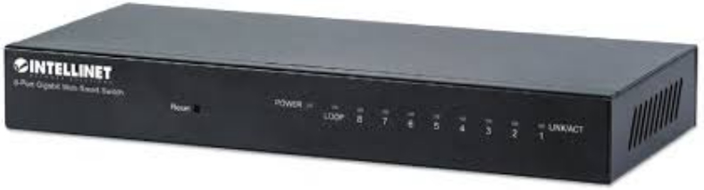 Intellinet 561099. Puertos tipo básico de conmutación RJ-45 Ethernet: Gigabit Ethernet (10/100/1000), Tecnología de cableado ethernet de cobre: 10BASE-T,100BASE-TX,1000BASE-T. Estándares de red: IEEE 802.1Q,IEEE 802.1p,IEEE 802.3,IEEE 802.3ab,IEEE 802.3az,IEEE 802.3u,IEEE 802.3x, Tipos de cable soportados: Cat5,Cat5e. Tabla de direcciones MAC: 8192 entradas, Capacidad de conmutación: 16 Gbit/s, Tasa de reenvío de paquetes (1 Gbps): 1488000 pps. Color del producto: Negro, Indicadores LED: Actividad, Poder, Material de la cubierta: Metal. Tamaño de buffer: 256 KB