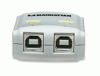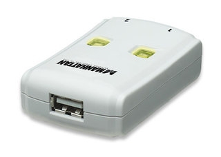 Manhattan USB 2.0 Automatic Sharing Switch. Longitud de cable: 1.5 m. Velocidad de transferencia de datos: 480 Mbit/s. Color del producto: Color blanco. Peso: 39.6 g. Interfaz: USB 2.0/1.1, Dimensiones (Ancho x Profundidad x Altura): 68 x 42 x 20 mm, Sistemas operativos compatibles: Win 2000/XP/Vista Mac OS 9 +