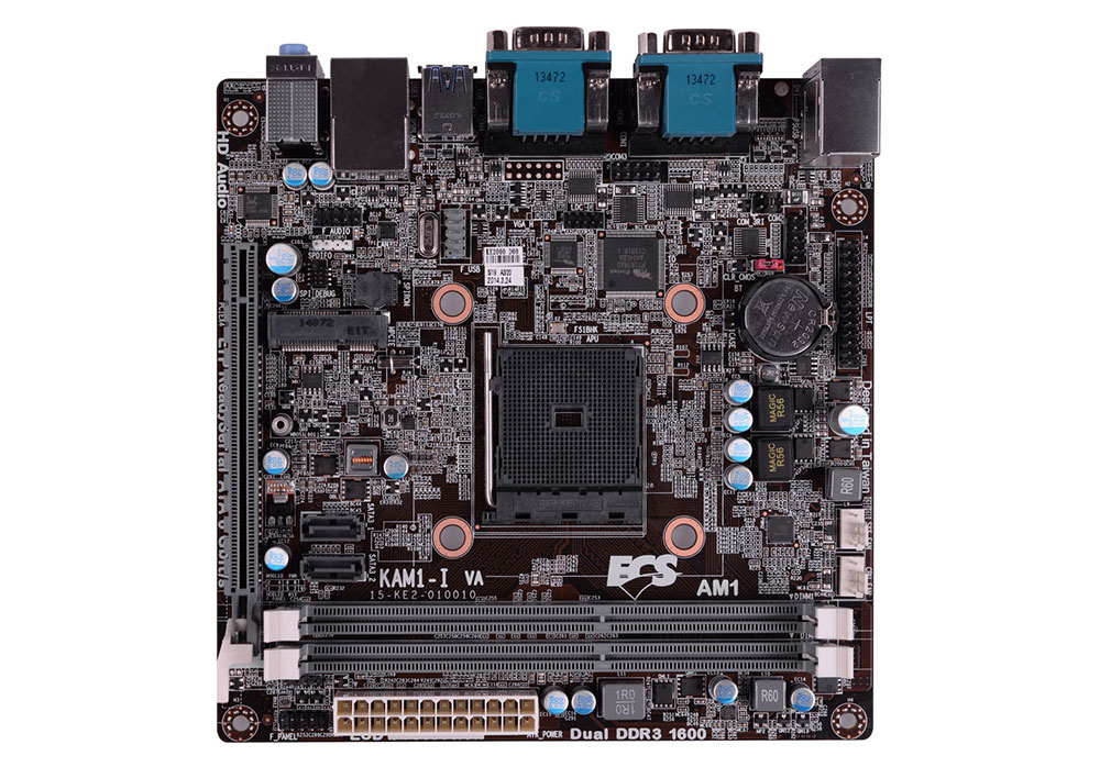 ECS Elitegroup KAM1-I. tipos de memoria compatibles: DDR3-SDRAM, Tipo de ranuras de memoria: DIMM, Canales de memoria: Solo. Familia de procesador: AMD, Procesador compatible: Athlon, Sempron, Socket de procesador: Socket AM1. Interfaces de unidad de disco duro soportadas: Serial ATA III. Controlador LAN: Realtek RTL8111G, Tipo de interfaz ethernet: Rápido, Gigabit. Componente para: PC, Familia de componentes de tarjeta madre: AMD, Tarjeta madre, factor de forma: Mini iTX